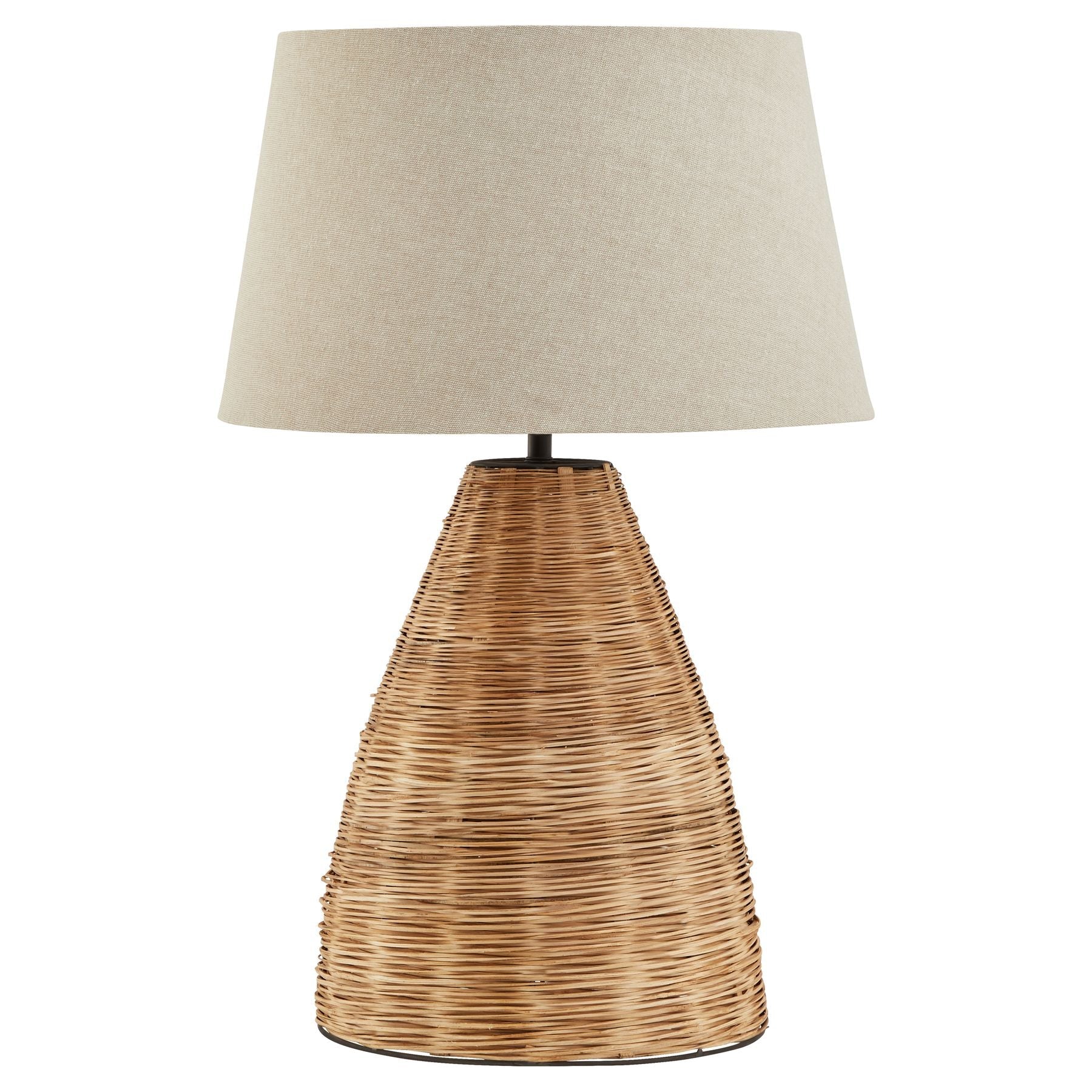 Conical Wicker Table Lamp With Linen Shade
